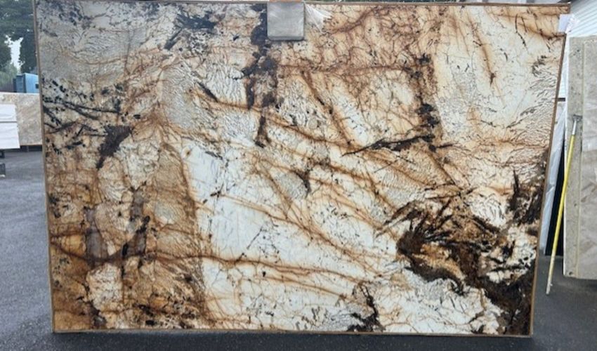 A "bundle" is a group of slabs from the same block of stone that typically possess similar coloration and movement. Pictures shown represent the first slab in each bundle. Due to inherent natural variations in stone, sequential slabs may vary in veining, color, shading, movement, surface texture, markings, voids, pittings, geological flaws, and patterns beyond the control of Bedrosians. Only one bundle will be displayed for viewing, however Bedrosians may have multiple bundles in stock.