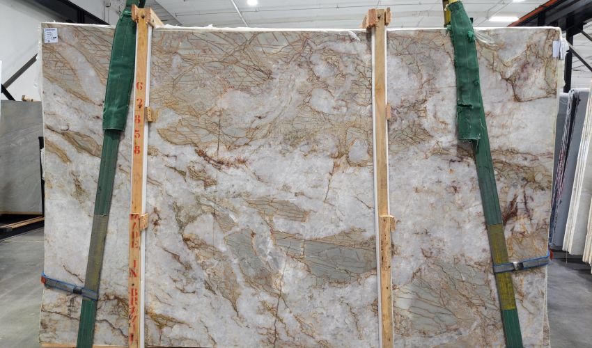 A "bundle" is a group of slabs from the same block of stone that typically possess similar coloration and movement. Pictures shown represent the first slab in each bundle. Due to inherent natural variations in stone, sequential slabs may vary in veining, color, shading, movement, surface texture, markings, voids, pittings, geological flaws, and patterns beyond the control of Bedrosians. Only one bundle will be displayed for viewing, however Bedrosians may have multiple bundles in stock.