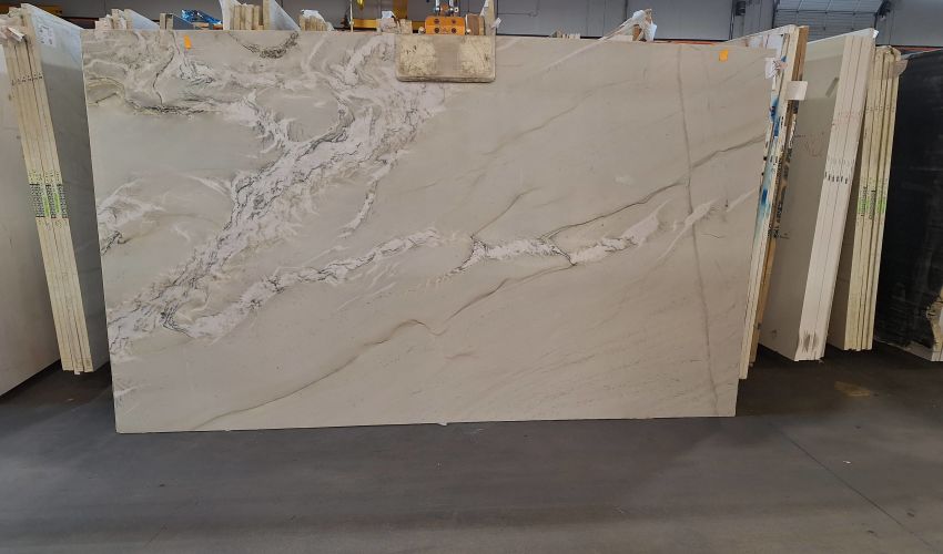 A "bundle" is a group of slabs from the same block of stone that typically possess similar coloration and movement. Pictures shown represent the first slab in each bundle. Due to inherent natural variations in stone, sequential slabs may vary in veining, color, shading, movement, surface texture, markings, voids, pittings, geological flaws, and patterns beyond the control of Bedrosians. Only one bundle will be displayed for viewing, however Bedrosians may have multiple bundles in stock.