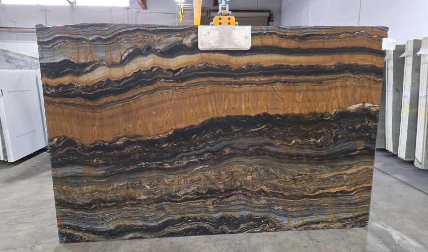 A "bundle" is a group of slabs from the same block of stone that typically possess similar coloration and movement. Pictures shown represent the first slab in each bundle. Due to inherent natural variations in stone, sequential slabs may vary in veining, color, shading, movement, surface texture, markings, voids, pittings, geological flaws, and patterns beyond the control of Bedrosians. Only one bundle will be displayed for viewing, however Bedrosians may have multiple bundles in stock.