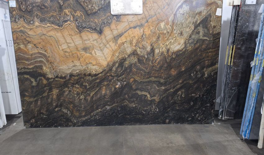 A "bundle" is a group of slabs from the same block of stone that typically possess similar coloration and movement. Pictures shown represent the first slab in each bundle. Due to inherent natural variations in stone, sequential slabs may vary in veining, color, shading, movement, surface texture, markings, voids, pittings, geological flaws, and patterns beyond the control of Bedrosians. Only one bundle will be displayed for viewing, however Bedrosians may have multiple bundles in stock.